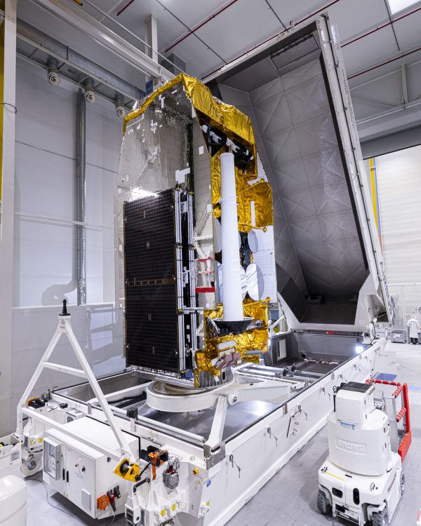The 25-tonne container with a maximum payload of 7.5 tonnes is the result of 5 years of development and manufacturing, enabling Airbus Defence and Space to transport by air, road, rail or sea any spacecraft in the wide range [3.5 to 7.5 tonnes] of the Eurostar Neo spacecraft family.