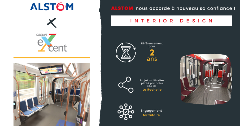 C’est avec fierté que les équipes eXcent ont vu leur travail récompensé en remportant en mars 2023 un contrat privilégié pour Alstom ! Ce contrat d’une durée de 2 ans consiste à développer avec le CDSI basé à Valenciennes (Centre de développement des aménagements intérieurs ALSTOM) l’ensemble des pièces d’aménagement des trains conçus par les sites du groupe Alstom.